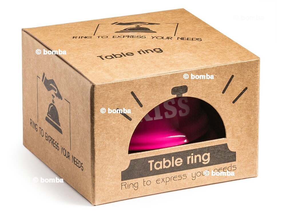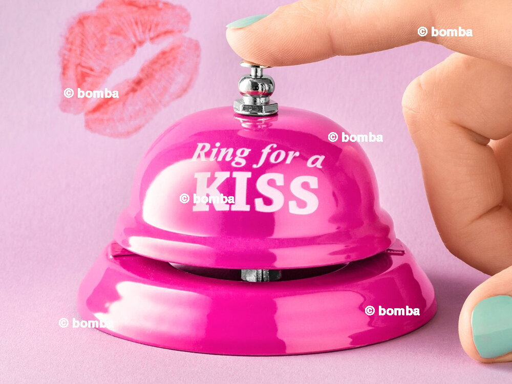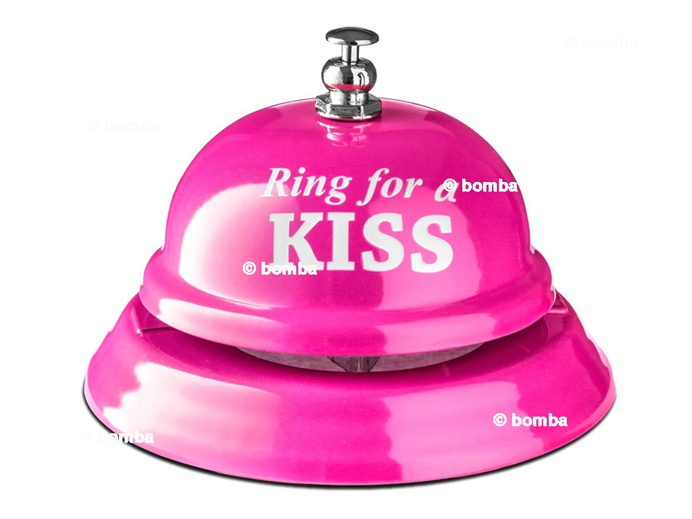 Tischklingel für Küsse ist ein witziger und praktischer Helfer für alle Verliebten, die sich nach einem süßen Kuss sehnen. Ihr durchdringender Klang signalisiert Ihrem Partner genau, worauf Sie gerade Lust haben. Die Tischklingel für Küsse ist ein ideales und originelles Geschenk aus Liebe oder zum Valentinstag. Sie besteht aus Metall, ist rosa und trägt die englische Aufschrift "Ring for a KISS".