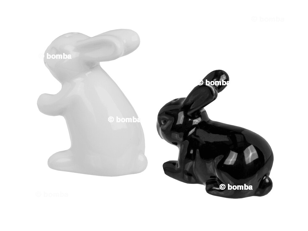 Das Salz- und Pfefferstreuer Set ist ein originelles Accessoire für die Küche oder den Esstisch, mit dem Sie Ihre Freunde inspirieren und erfreuen können. Das Streuerset besteht aus einem weißen Häschen für Salz und einem schwarzen Häschen für Pfeffer. Das Set ist aus Keramik gefertigt, nicht für die Mikrowelle oder Spülmaschine geeignet und sollte nur von Hand gewaschen werden. Der Preis gilt für das Paar.